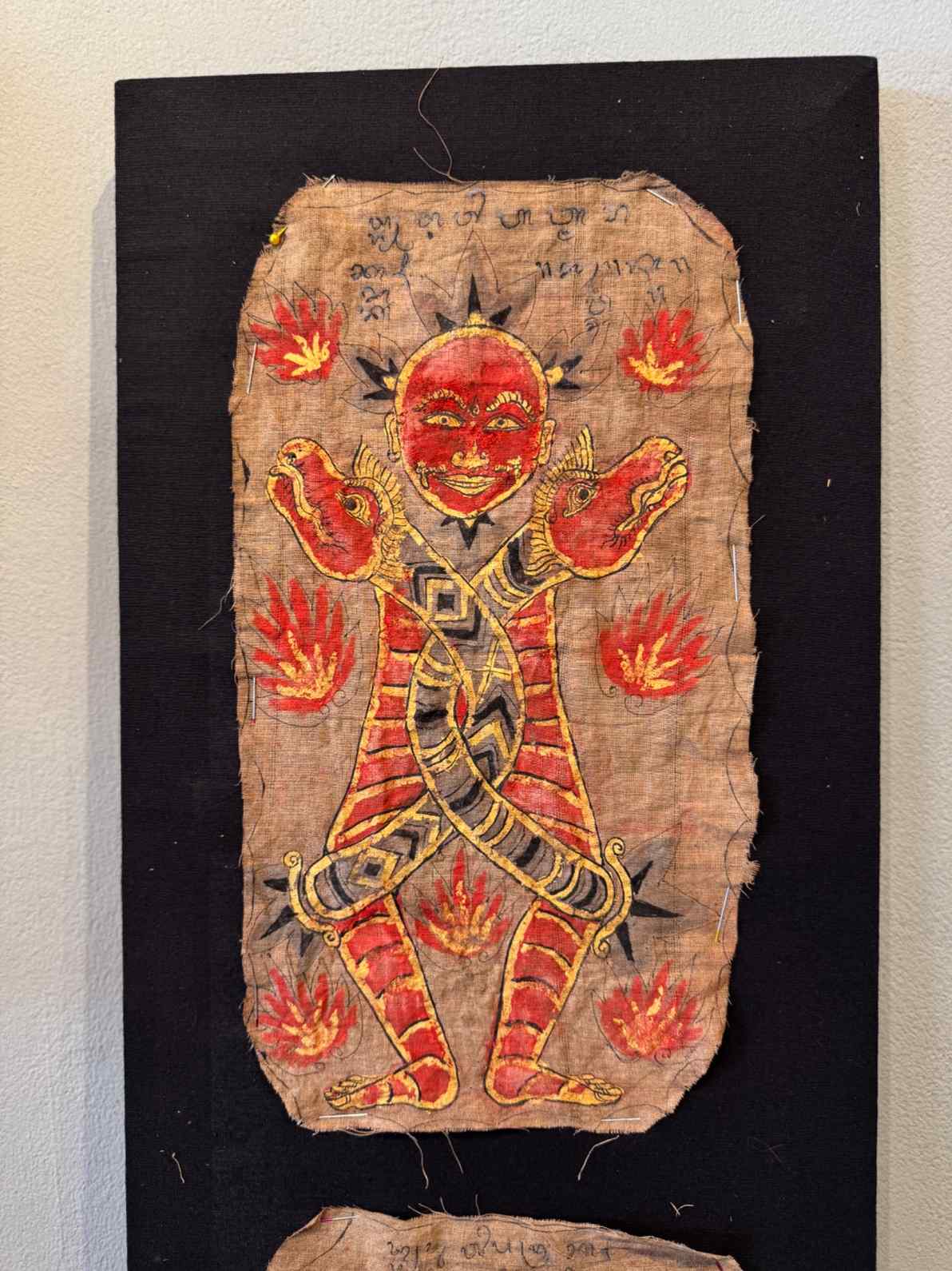 Rerajahan Penengen From Bali, estimated 160 years old ( early 20 century ). Height total 79 cm and width 21 cm.Rerajahan Bali is the art of magical images in the form of a combination of sacred characters and figurative symbols (such as Semara Ratih or gods) which is believed to have high spiritual power. Used as a means of self-protection, purification (pemlaspas), and a magical power enhancer in the Balinese Hindu tradition.